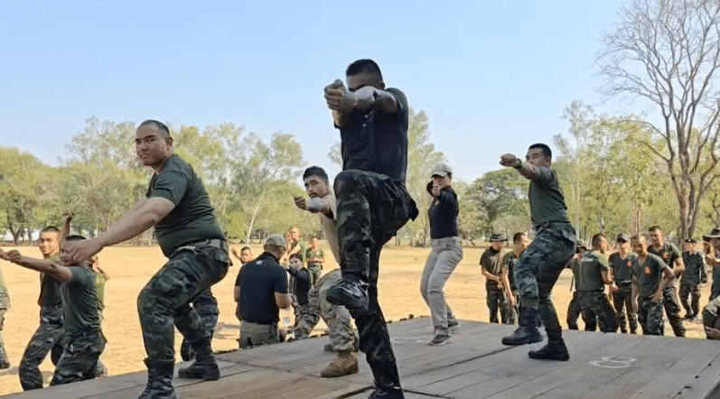 พร้อมทั้งได้ร่วมกัน ออกอาวุธ หมัด เท้า เข่า ศอก ไปพร้อมๆ กัน อย่างสนุกสนานเป็นกันเอง ซึ่งสร้างความประทับใจให้แก่ กำลังพล ทั้งกองทัพบกไทย และกองทัพบกสหรัฐฯ เป็นอย่างมาก