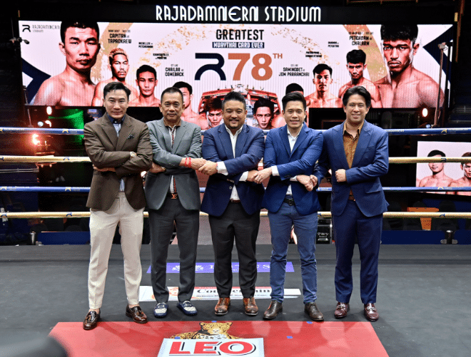 นายจิต เชี่ยวสกุล นายสนามมวยเวทีราชดำเนิน , “เสี่ยแบงค์” เธียรชัย พิสิฐวุฒินันท์ ประธานฝ่ายบริหารบริษัท โกลเบิล สปอร์ต เวนเจอร์ส จำกัด ร่วมกับ สมหมาย สกุลเมตตา , เดียร์ เกียรติเพชร และ โบท เพชรยินดี ได้ร่วมกันแถลงข่าวการแข่งขันมวยไทยฉลองวันเกิด 78 ปี เวทีราชดำเนิน ในวันที่ 27 ธันวาคม 2566