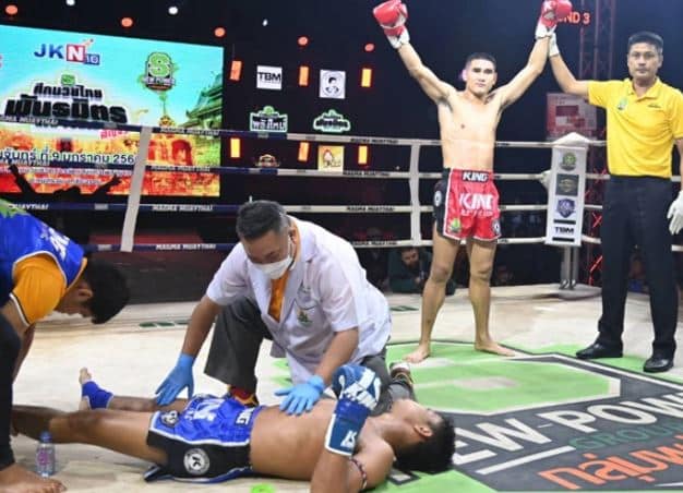 ศึกมวยไทยพันธมิตร ซุปเปอร์บอล ชนะทีเคโอ เพชรอู่ทอง ยก3