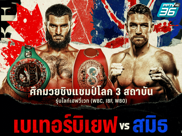 ข่าวมวย pptv ช่อง 36 – พีพีทีวี เอชดี ชวนแฟนมวยร่วมมันส์สะใจด้วยการถ่ายทอดสดศึกมวยชิงแชมป์โลก 3 สถาบัน รุ่นไลท์เฮฟวี่เวท (WBC, IBF, WBO) ระหว่าง คิงอาร์เธอร์ อาเธอร์ เบเทอร์บิเยฟ ขึ้นสังเวียนชกป้องกันเข็มขัดแชมป์กับ คัลลัม สมิธ วันอาทิตย์ที่ 14 มกราคม 2567 เวลา 10.00 น. ณ วิเดโอตรอน เซ็นเตอร์ ควิเบกซิตี้ ประเทศแคนาดา